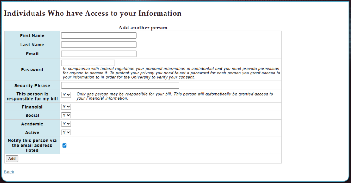 - An email will be sent to the address you list here. This includes a link to sign-in and the password you designated.